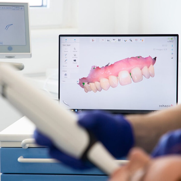 - Comfortable scan: The handheld TRIOS 6 scanner moves gently around your mouth, capturing a live 3D model.
